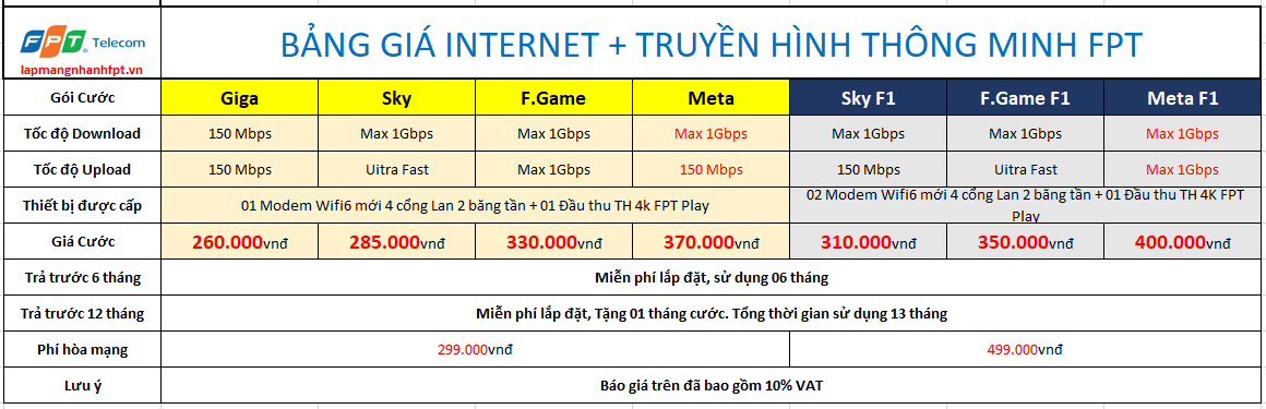Bảng giá khuyến mại lắp mạng FPT Thành Phố Hồ Chí Minh